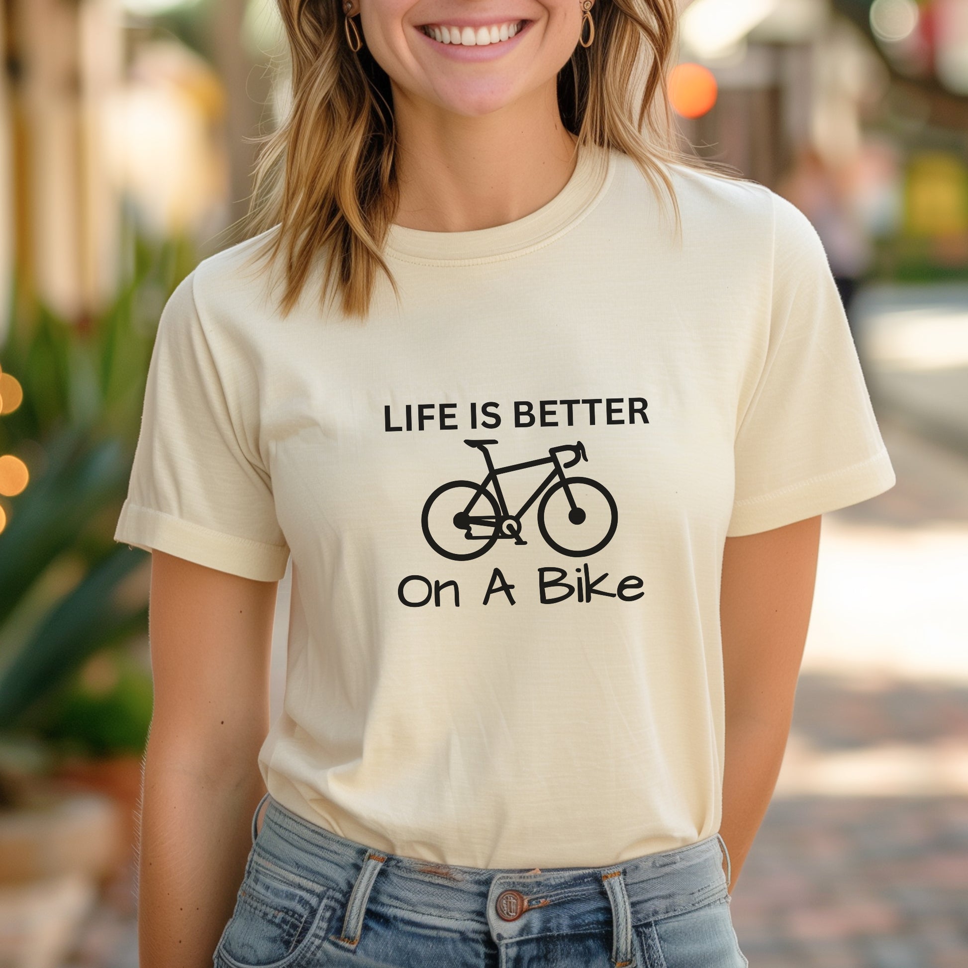 Simple and to the point - life is always better when you can ride. Keep it simple with this cycling t-shirt.
