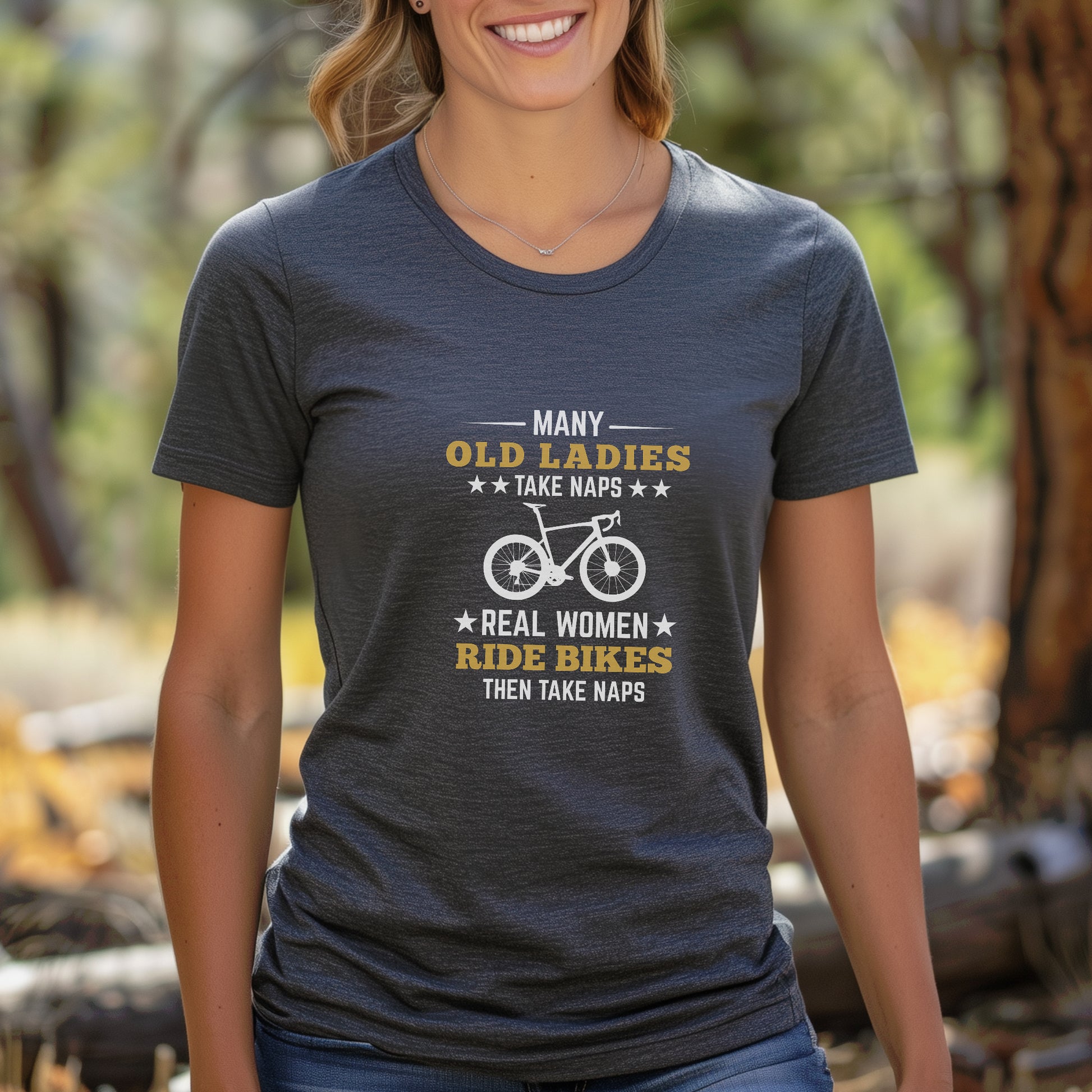 This cycling t-shirt's for those ladies who are a bit more 'experienced' and love to ride, then maybe take a nap - sure to get smiles from other cyclists.