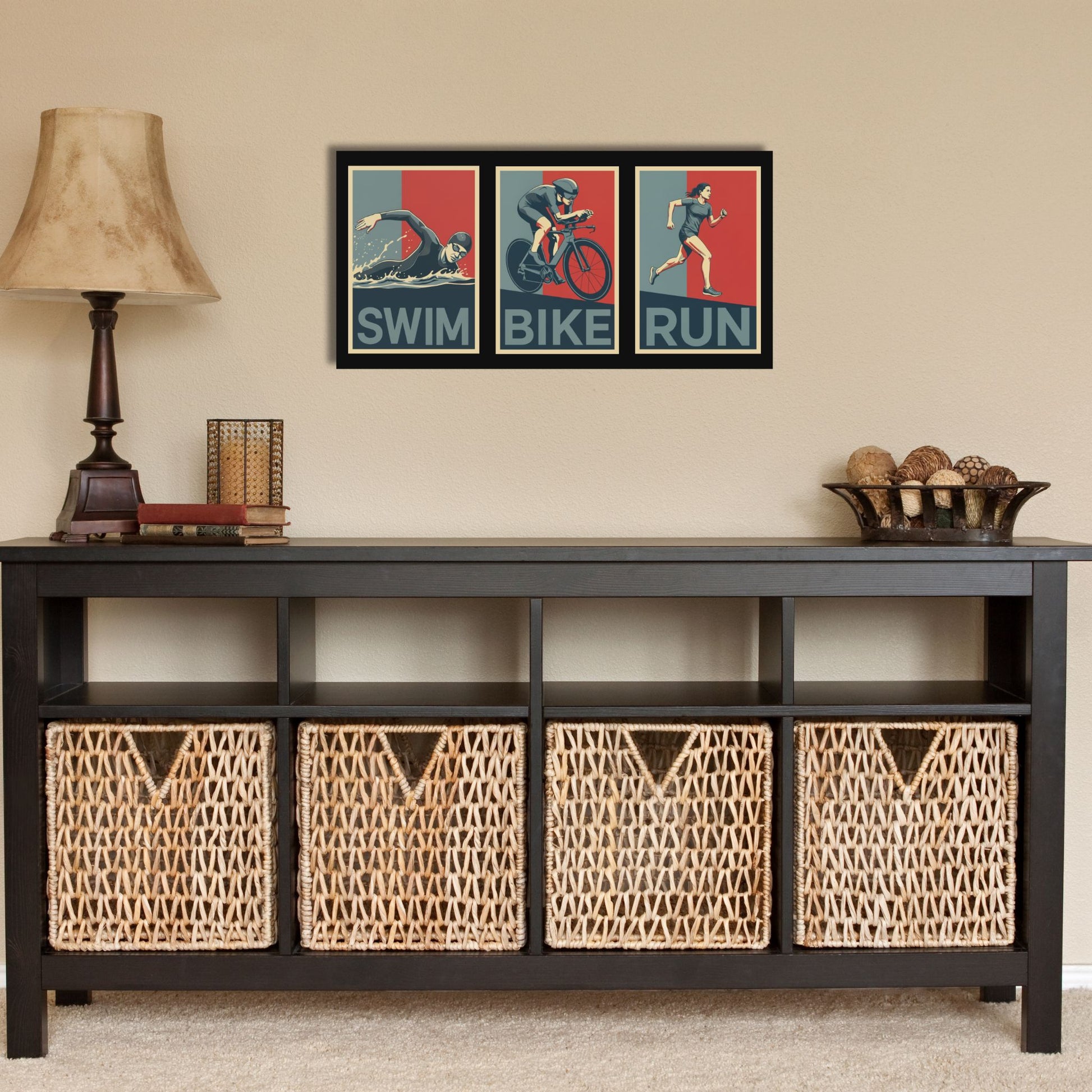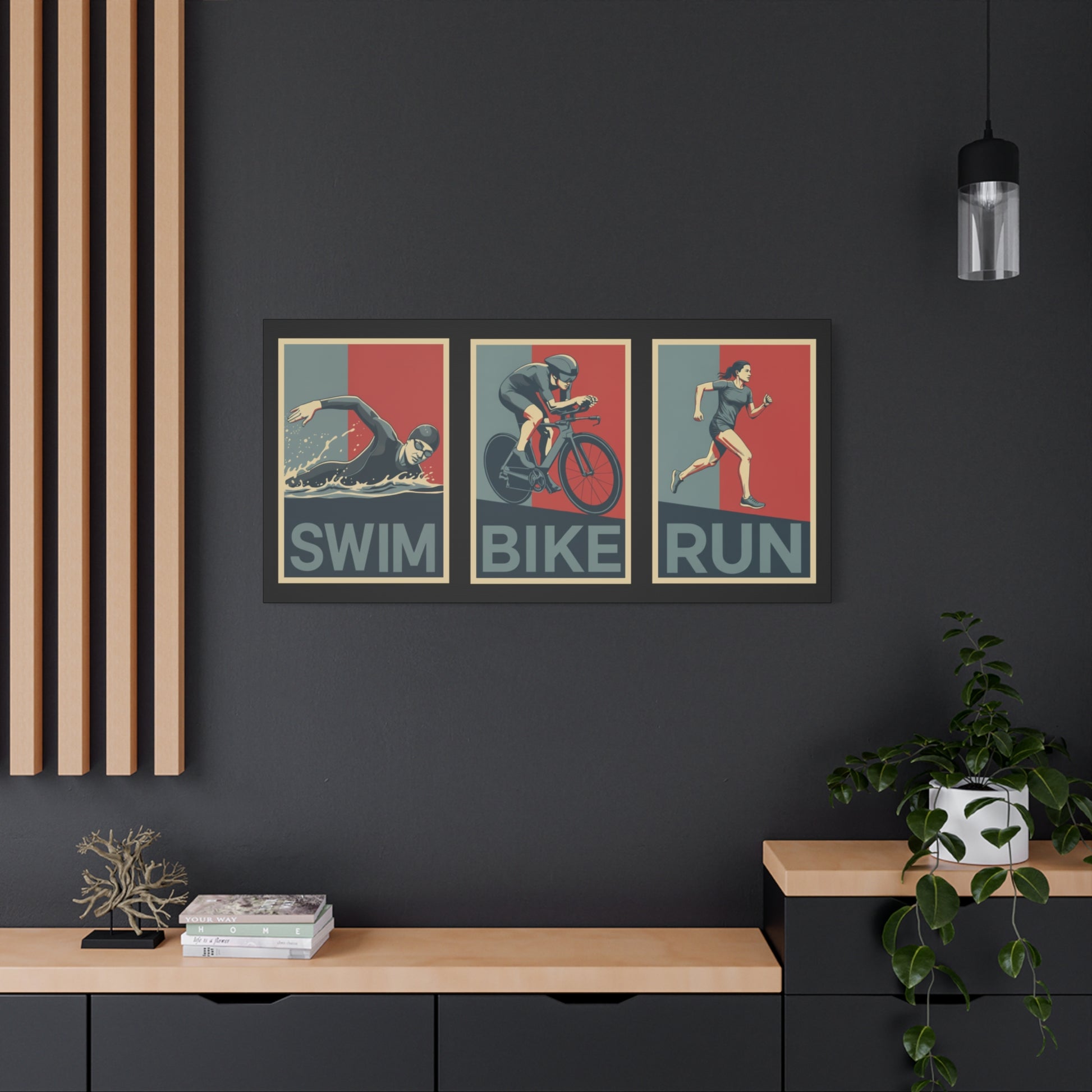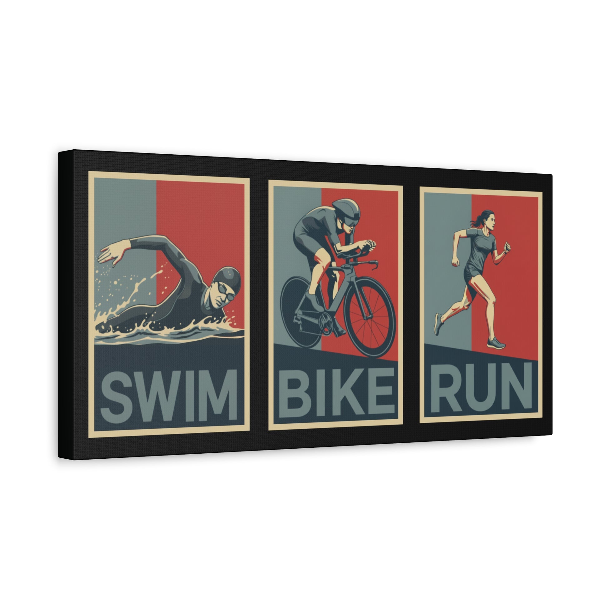 Bring your triathlon lifestyle to life with this canvas art piece for female triathletes. Whether itβs your home gym, office, or pain cave, this retro poster-style canvas will stand out.